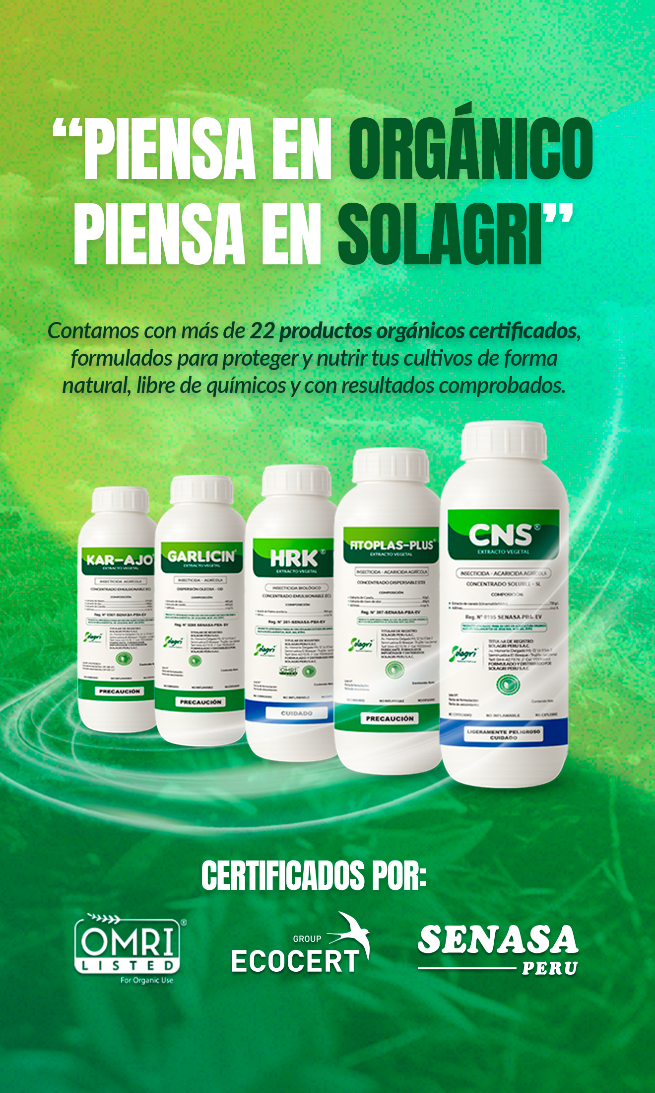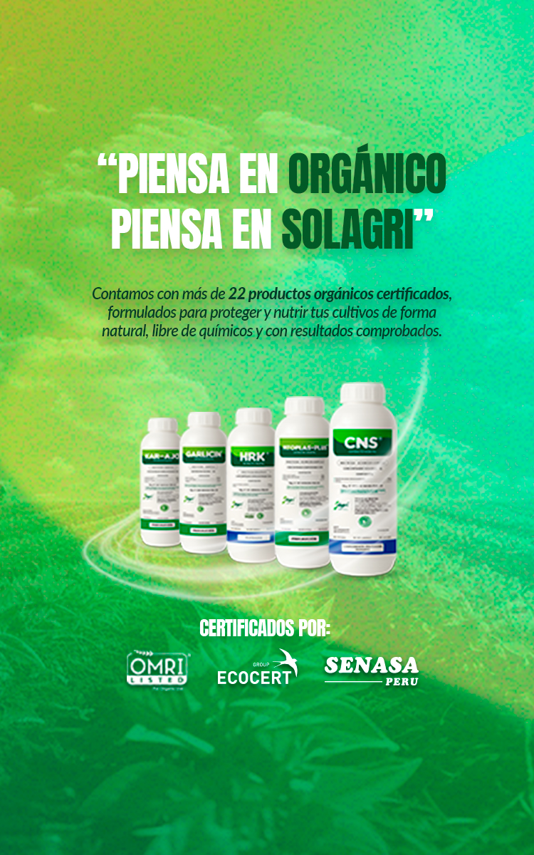 En Solagri, somos un referente clave en el sector agrícola, desempeñándonos como distribuidor, fabricante-productor, formulador e importador de insumos agrícolas orgánicos. Nos especializamos en ofrecer soluciones innovadoras y certificadas que cumplen con los más altos estándares internacionales. Nuestro compromiso es brindar productos de calidad que potencien la productividad, cuiden el medio ambiente y respalden el crecimiento sostenible de nuestros agricultores.